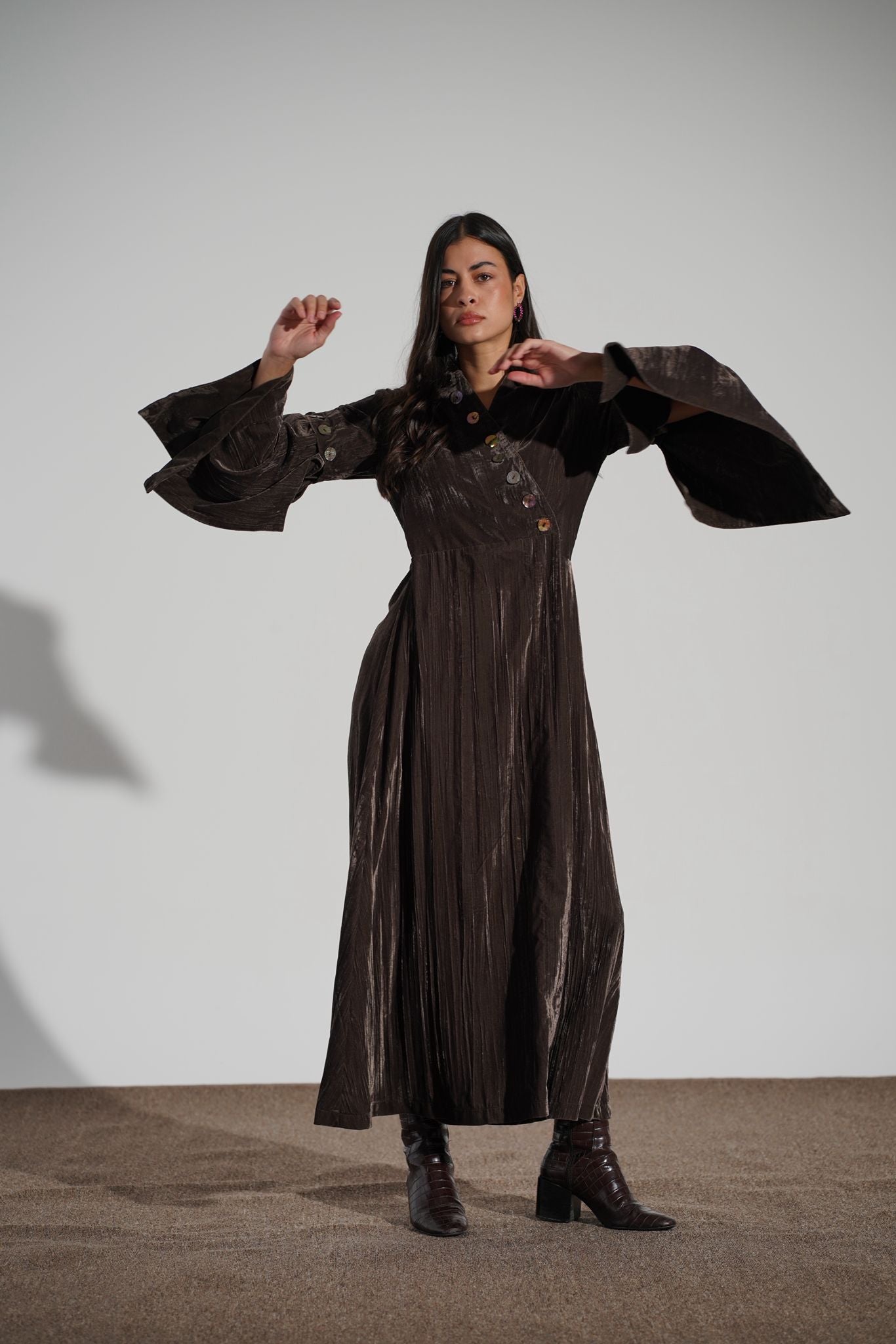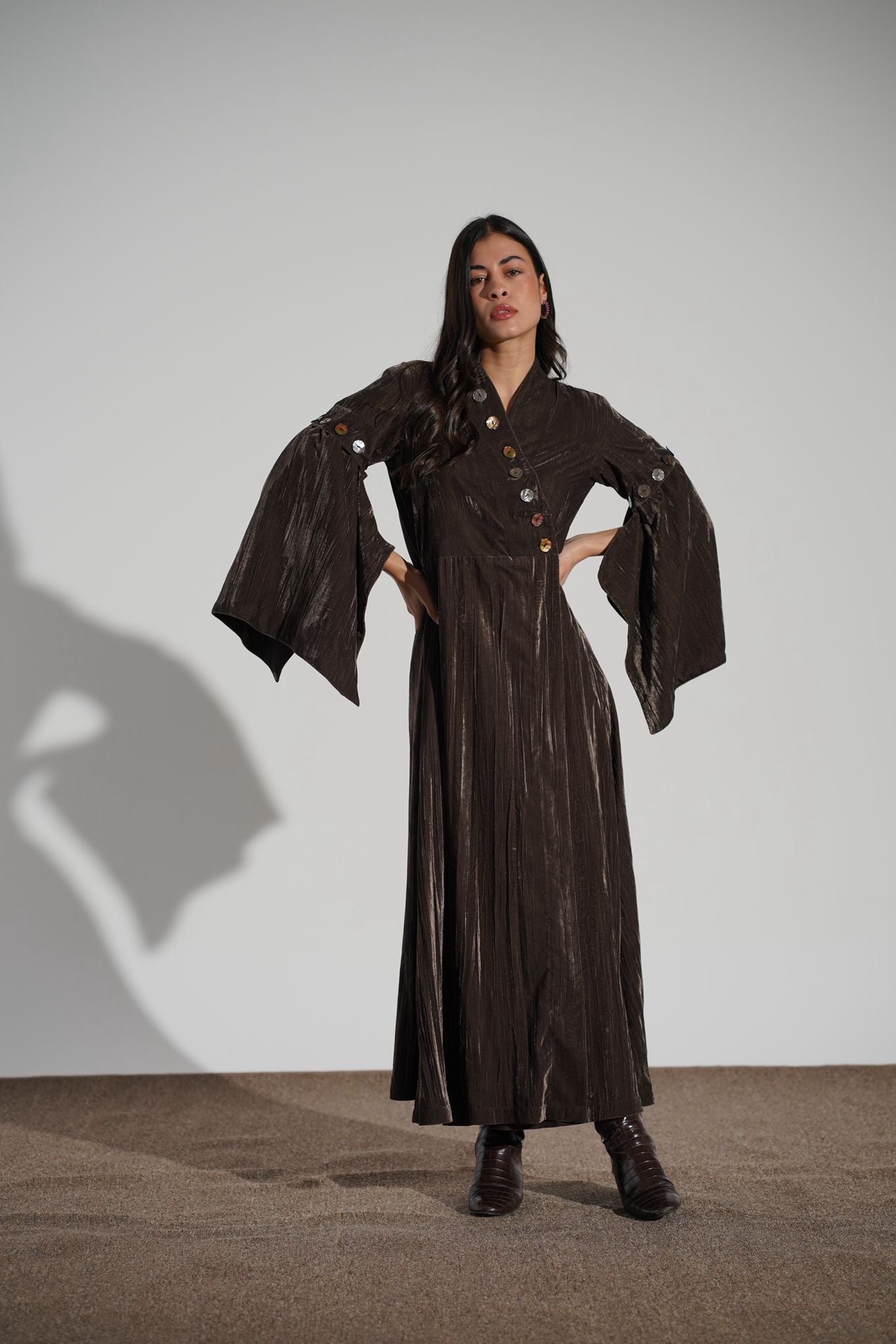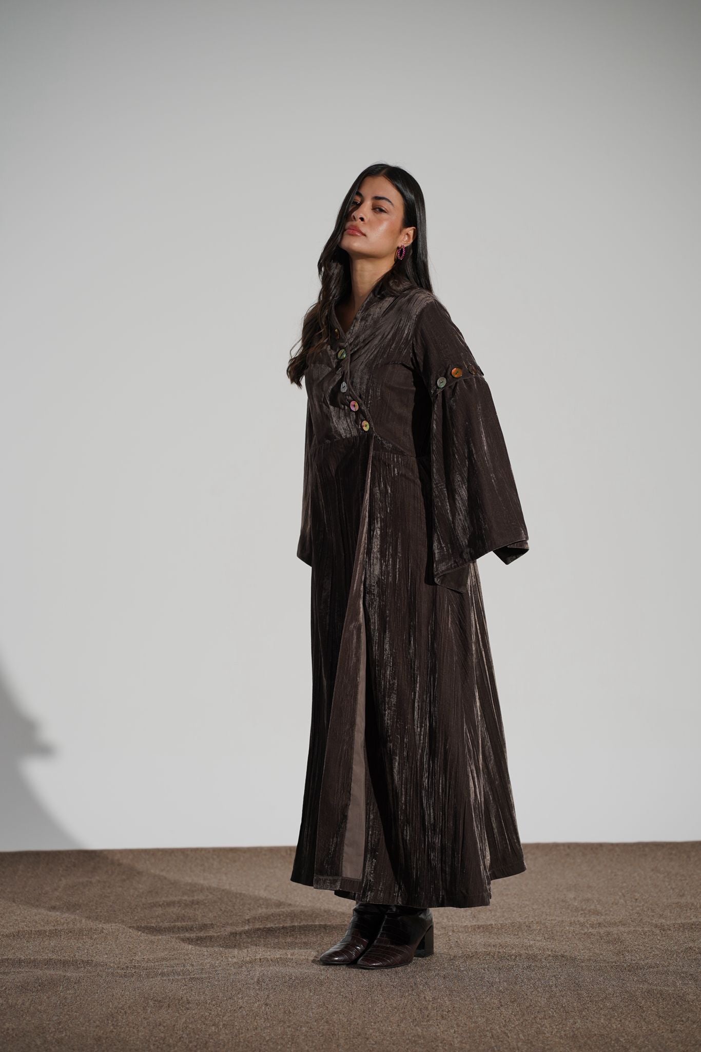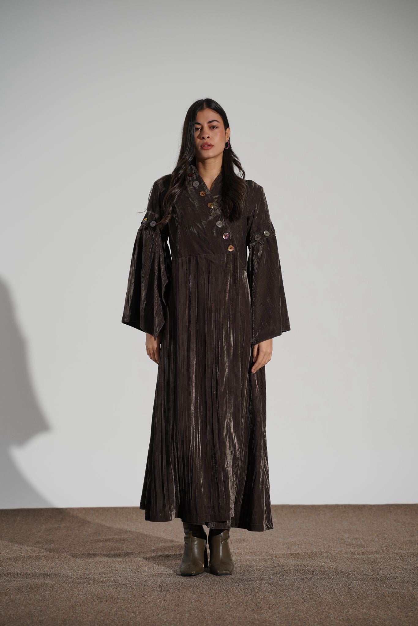 A full light velvet decorated with hand picked buttons